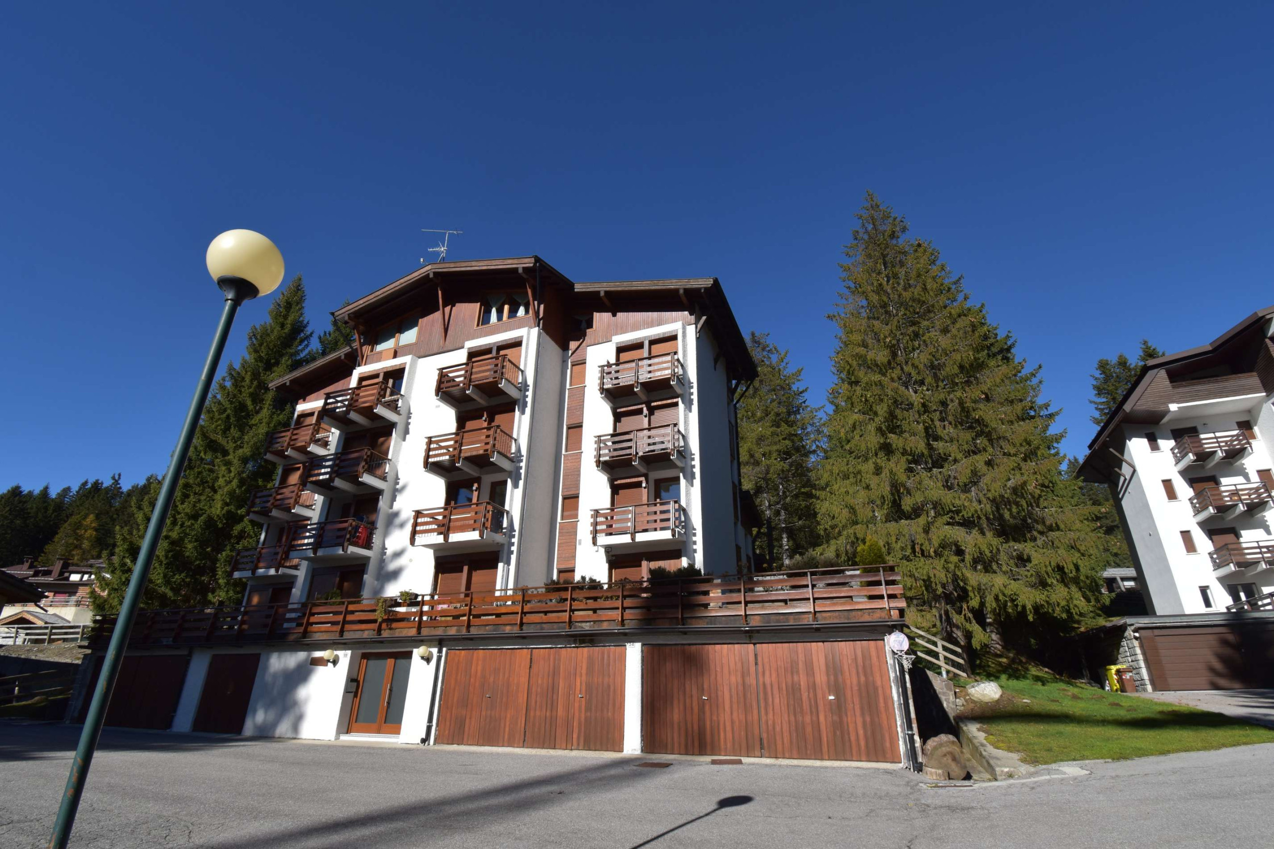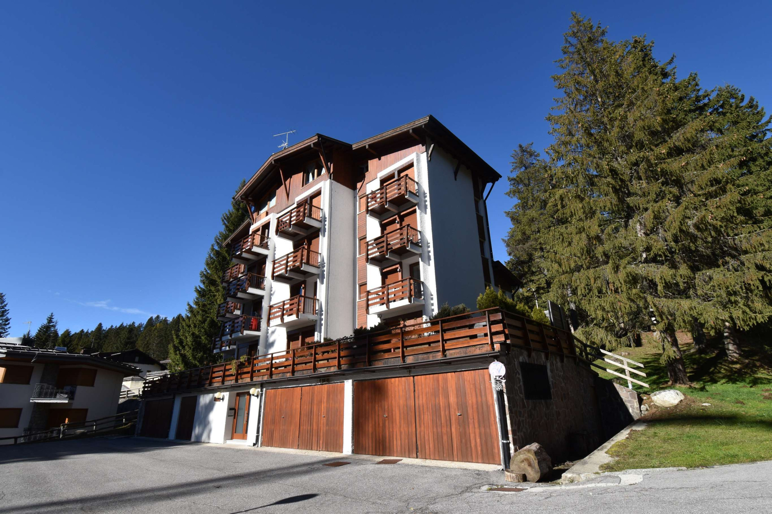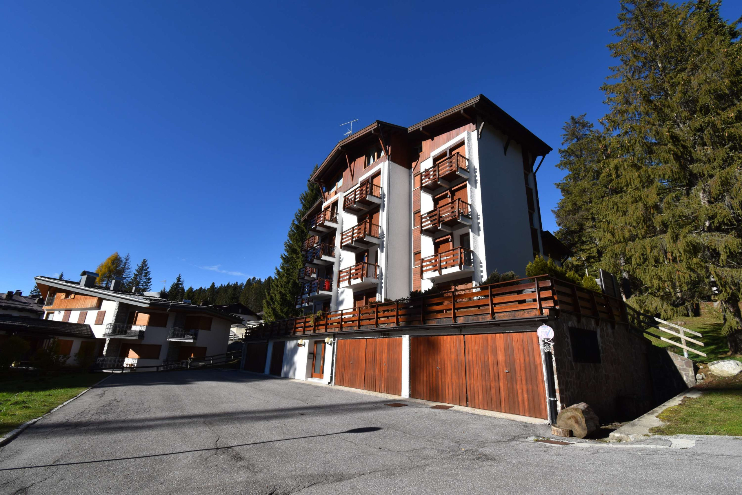 Appartamento Quadrilocale sito presso il condominio Pradalago in loc. Campo Carlo Magno, al 3° piano si compone di ingresso, soggiorno con zona pranzo e balcone con vista sul Grostè, 3 camere da letto di cui una stanza matrimoniale, una stanza con 2 letti singoli ed una stanza con 1 letto singolo, bagno con doccia, e cucinino.