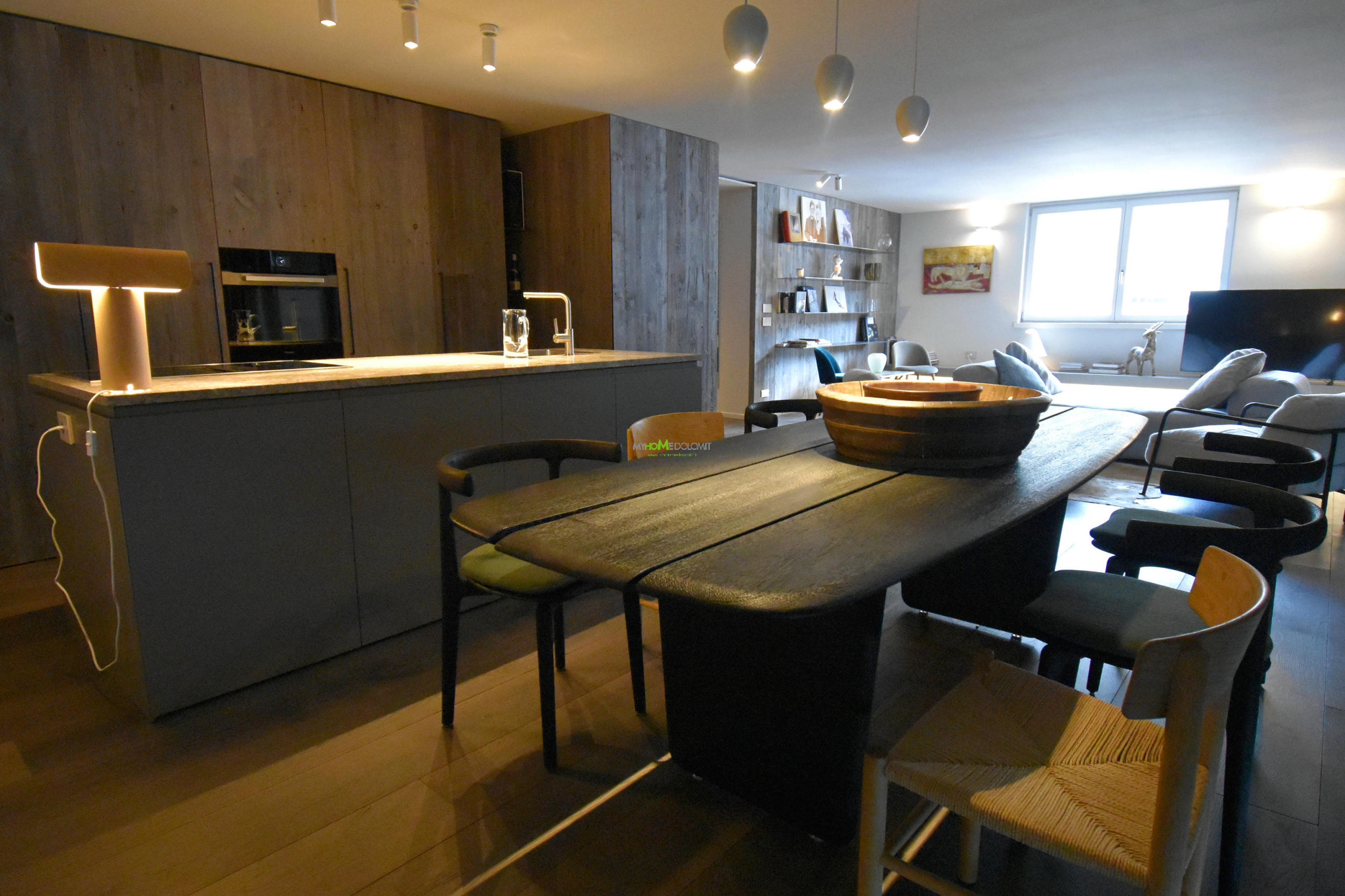 L’appartamento dispone di due camere matrimoniali e due bagni con doccia. Il punto di forza è la zona giorno, spaziosa e luminosa, è caratterizzata da ampie vetrate che inondano di luce il soggiorno. Qui, divani e poltrone creano un angolo relax intimo che si apre sulla cucina a vista, completamente attrezzata con forno e lavastoviglie.