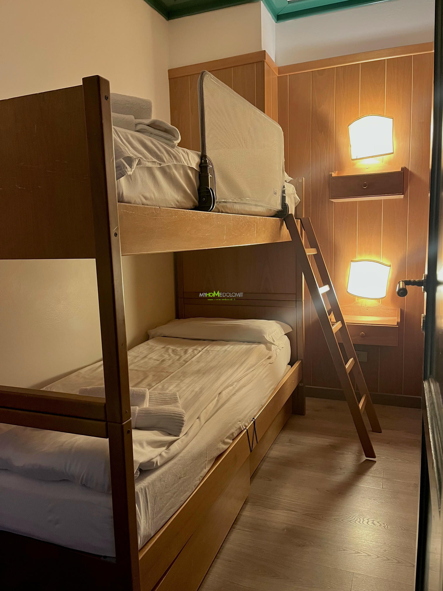 Appartamento sito al 4° piano, con ascensore, della residenza Sport Campiglio nel cuore di Madonna di Campiglio, composto da ingresso, stanza cieca con letto a castello, stanza con letto matrimoniale, soggiorno, cucinino, bagno con doccia ed ampio balcone. In posizione centralissima a pochi metri dalla piazza Righi, molto comodo a negozi, bar, locali e supermercati, oltre che a tutti i servizi della località. Dista circa 100 metri dalla cabinovia 5 Laghi.