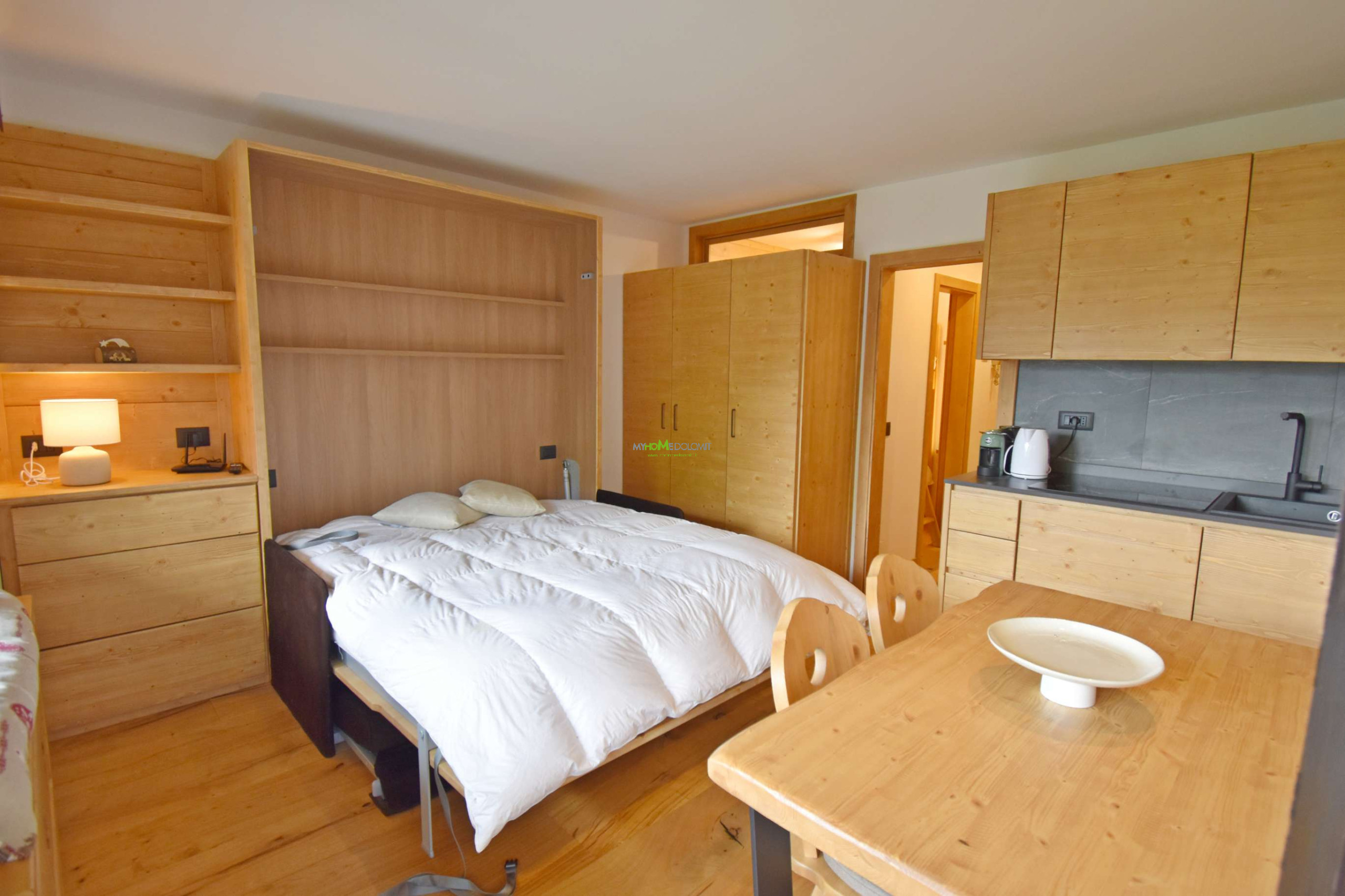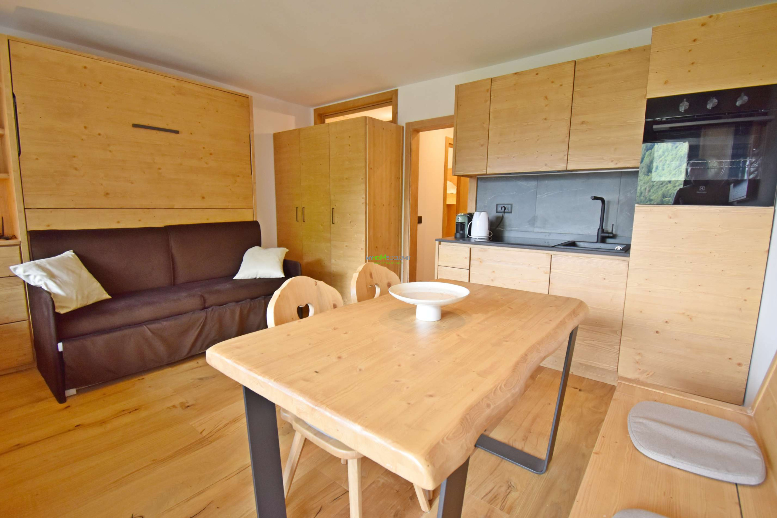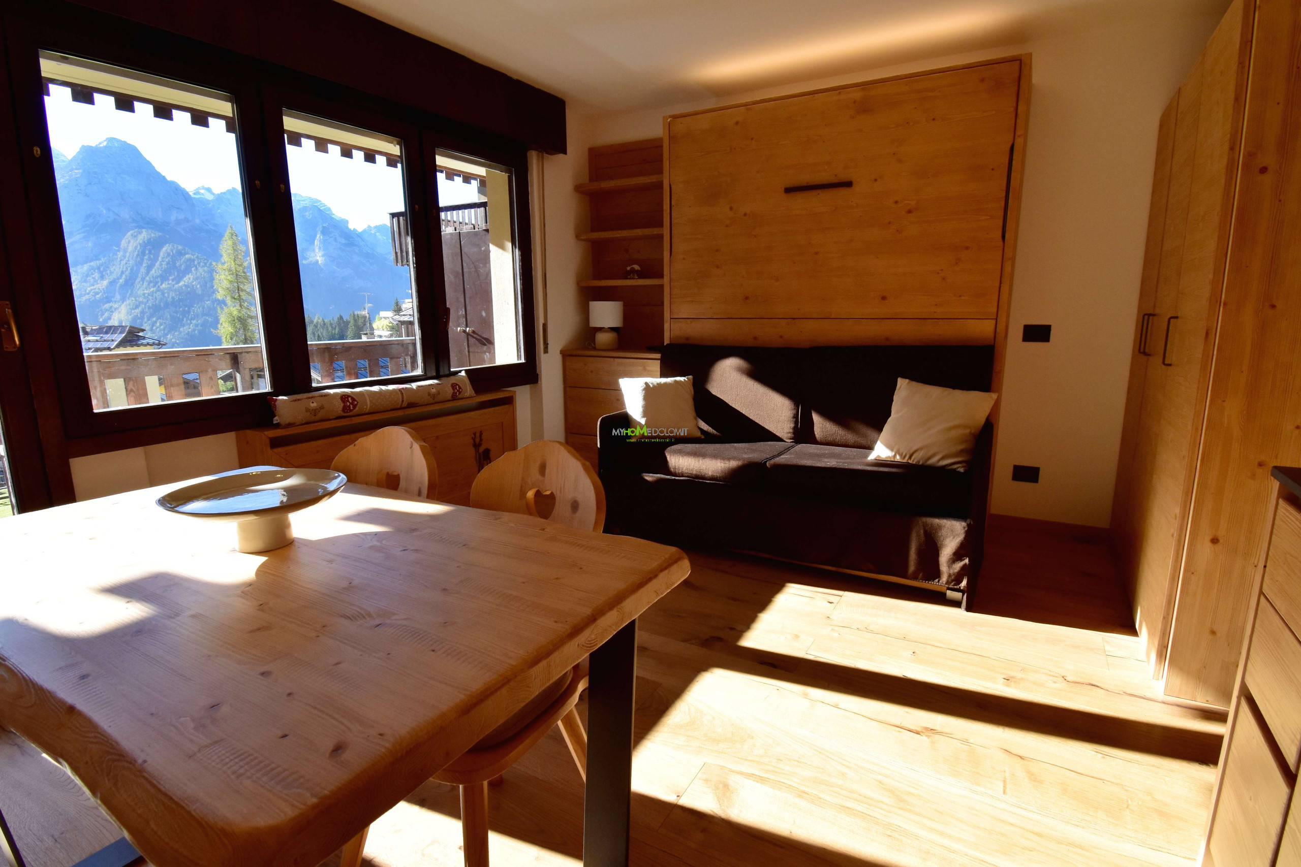 Scopri la magia delle Dolomiti in questo luminoso monolocale completamente ristrutturato, situato nel condomino Presanella. Studiato per massimizzare lo spazio è composto da un ingresso dove si trova un'accogliente nicchia con letto a castello ideale per i più piccoli, ed un bagno completo di doccia. Troviamo poi Il soggiorno con un attrezzato angolo cottura, con panca e tavolo da pranzo, il divano si trasforma in un comodo letto matrimoniale a scomparsa creando un ambiente funzionale e versatile. Apri le porte-finestre e goditi il vero spettacolo: un ampio balcone con una vista mozzafiato sulle Dolomiti. La posizione è molto comoda per gli amanti dello sci, a pochi passi potrete raggiungere la partenza della cabinovia Colarin, un rapido accesso alle piste della 5 Laghi ed al comprensorio sciistico di Madonna di Campiglio. Un alloggio che unisce praticità, bellezza e tutti i comfort necessari per una vacanza indimenticabil