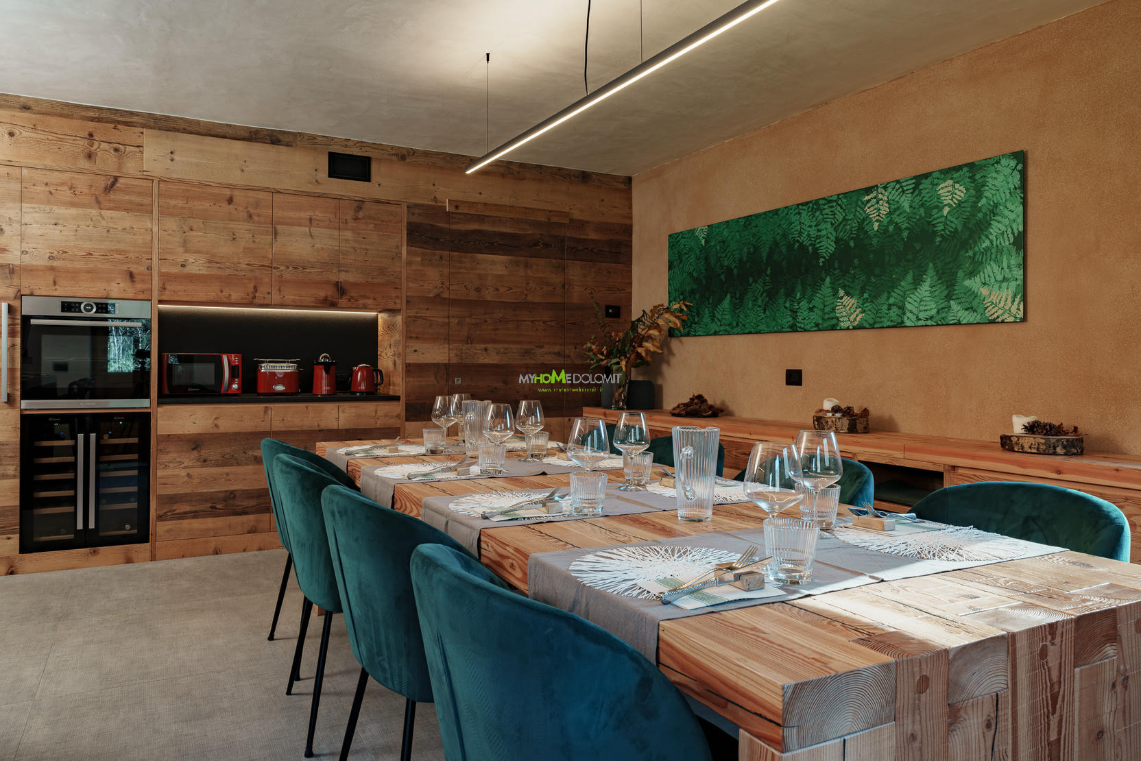 Il cuore pulsante della casa è l’ampia cucina conviviale, completamente accessoriata con cantina vini e macchina del caffè, che si apre su una sala da pranzo dove ogni mattina potrete gustare una colazione a base di prodotti locali a chilometro zero. Il relax prosegue nel salotto, riscaldato da un imponente camino a vista, e negli ambienti bagno, veri spazi benessere dotati di bagno turco, docce spaziose e set di cortesia naturali.