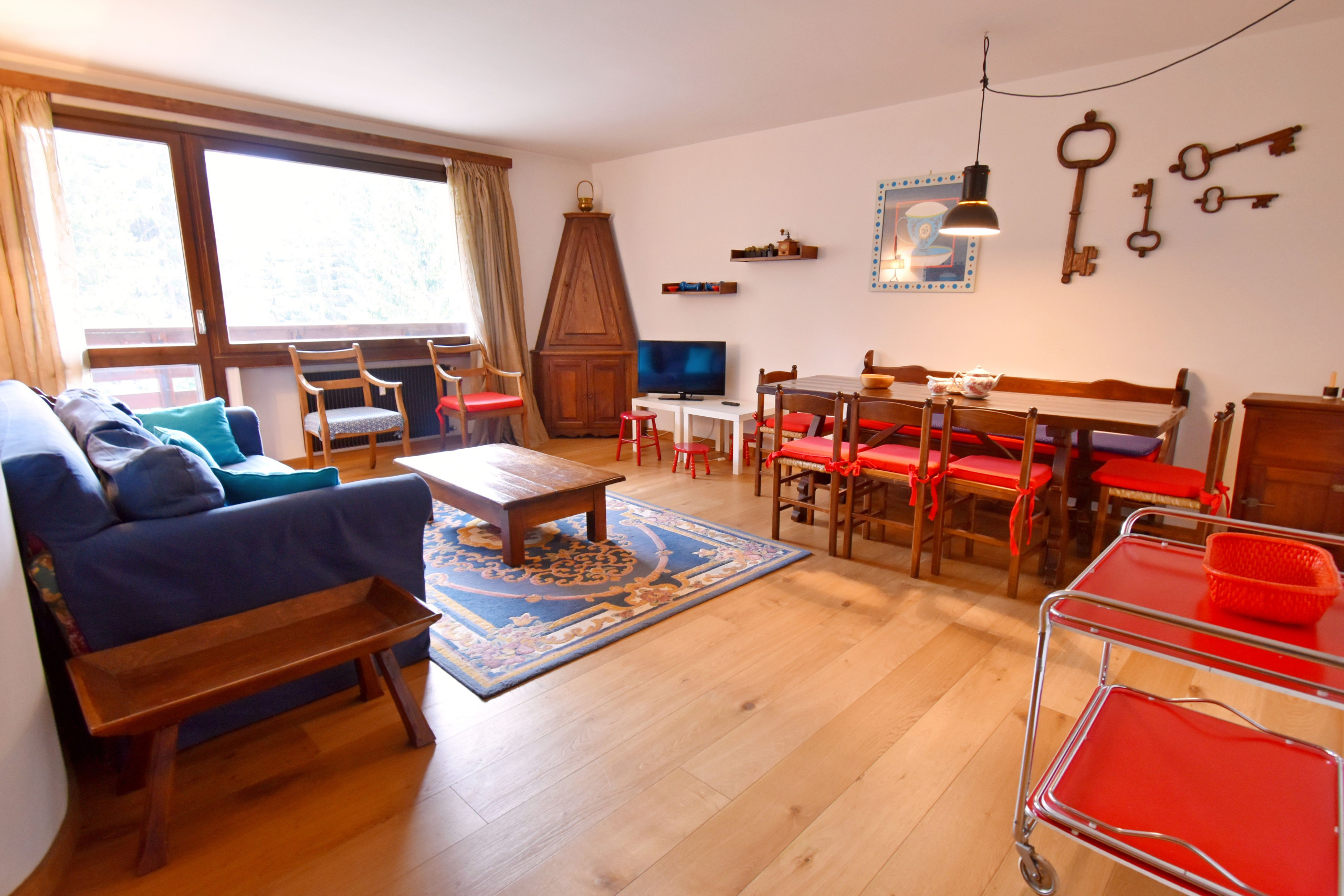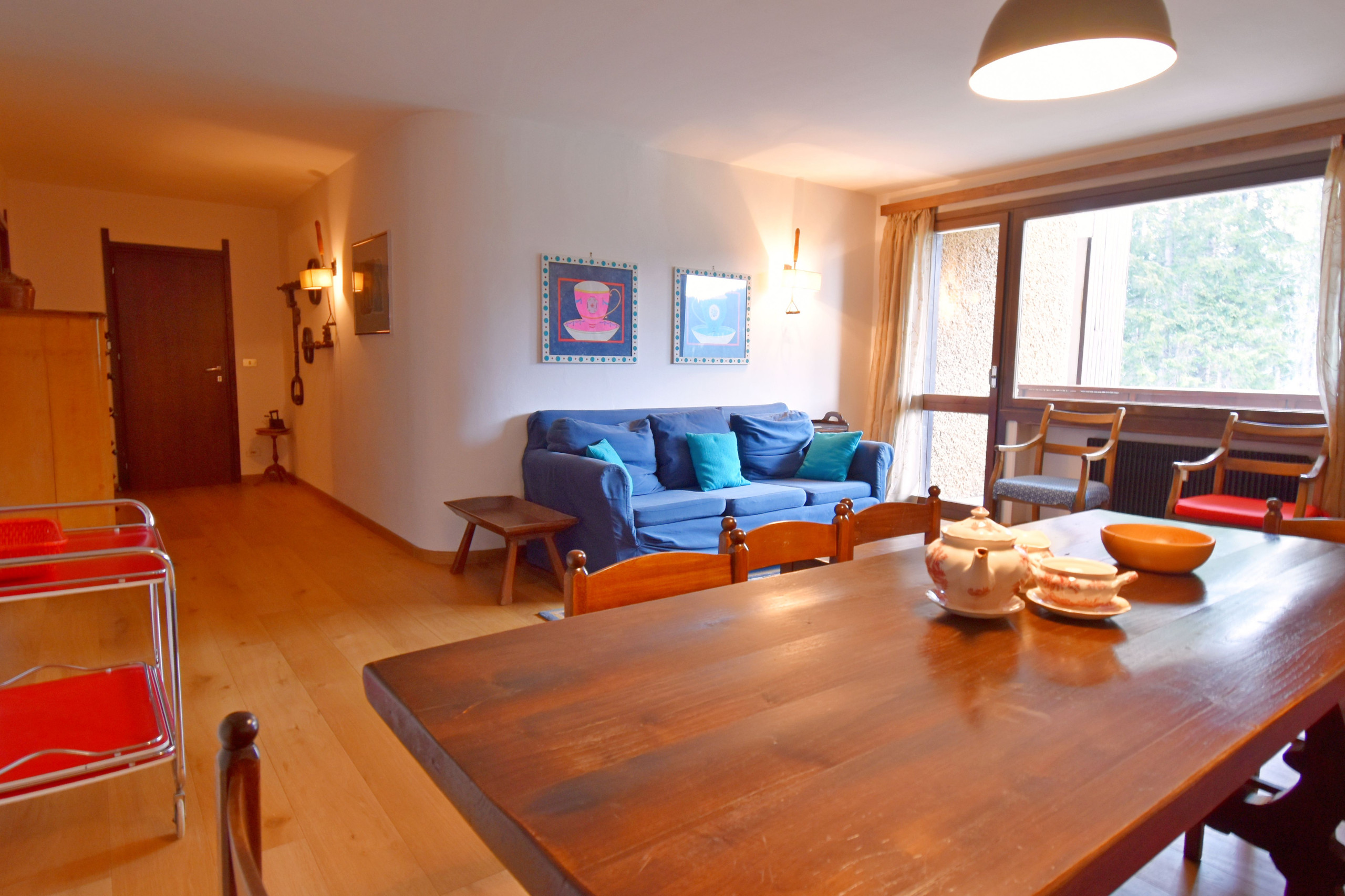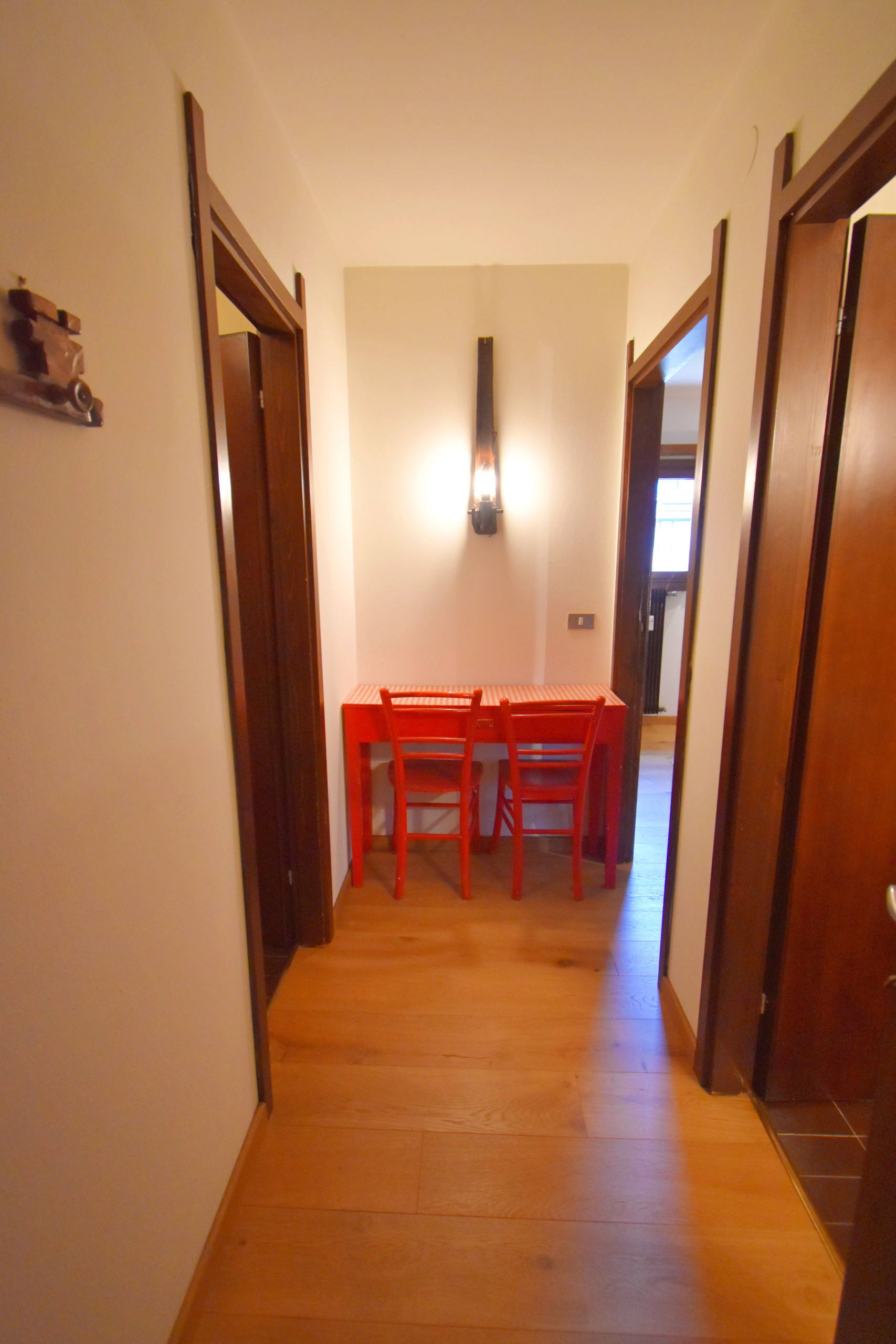 Gelegen in der Zone von Campo Carlo Magno in Madonna di Campiglio, eine einzigartige Lage, direkt an den Skipisten und dem Golfplatz, umgeben von Wäldern und Weiden, zeichnet es sich durch seinen herrlichen Ausblick aus, der die Majestät der Brenta-Dolomiten, die Skipisten und den Golfplatz umfasst und ein unvergleichliches Naturschauspiel garantiert. Im 2. Stock (ohne Aufzug) gelegen, hat es eine optimale Anordnung, um Familien oder Gruppen zu beherbergen. Es besteht aus einem geräumigen Eingang, der zu einer einladenden und hellen Wohnzone mit einem Essbereich, einem Sofabereich und dem Zugang zu einem panoramatischen und sonnigen Balkon führt. Ein Hauptschlafbereich mit Durchgang, bestehend aus einem komfortablen Doppelzimmer, einem Zweibettzimmer und einem Elternbad mit Badewanne, sowie ein Gäste-/Küchenbereich, der aus einem funktionalen Bereich mit einer praktischen Küche, einem Duschbad und einem Stockbettzimmer besteht, das perfekt für Jugendliche oder Dienstpersonal ist.