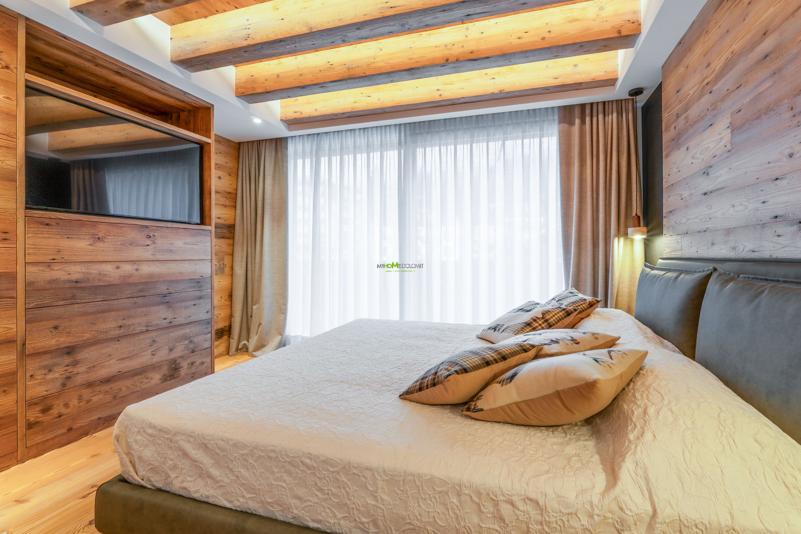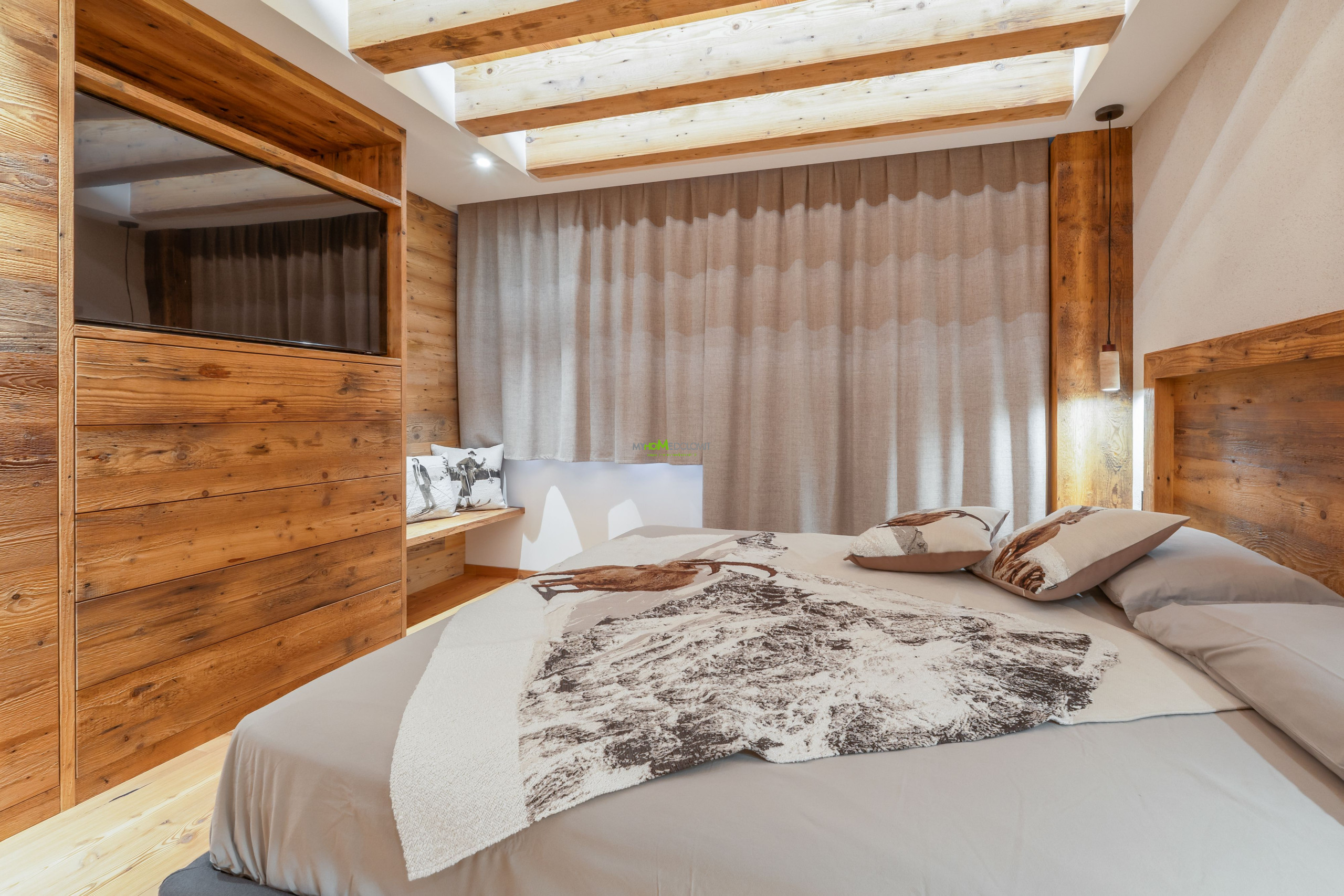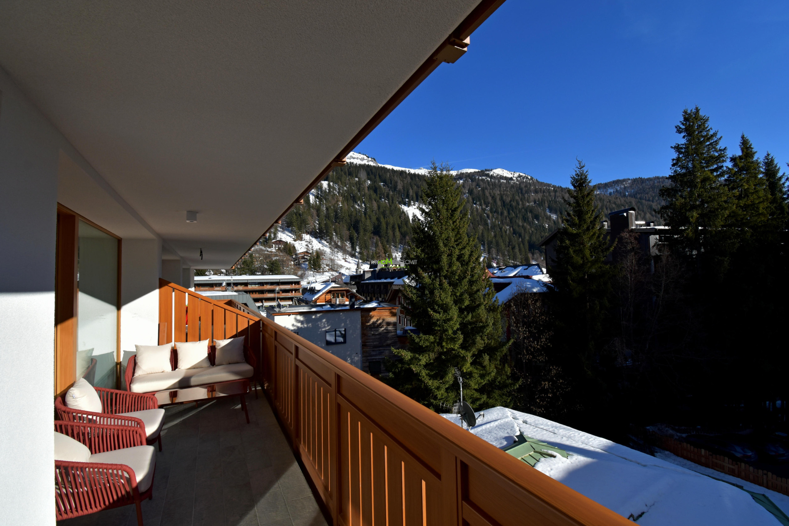 Treten Sie ein und lassen Sie sich von einer magischen Atmosphäre umhüllen. Der Duft des lokalen Holzes verschmilzt mit dem Licht, das durch die großen Fenster fällt und den Wohnbereich erhellt, in dem die Zeit stillzustehen scheint. Das Herz des Hauses ist der geräumige und lichtdurchflutete Wohnraum, ein Bereich, der für Geselligkeit und die Freude des Zusammenseins konzipiert wurde. Der große massive Holztisch, der bis zu 12 Personen Platz bietet, lädt Sie ein, fantastische Abendessen zu teilen und unvergessliche Erinnerungen zu schaffen. Und wenn der Abend hereinbricht, nehmen Sie auf dem eleganten Sofa Platz und lassen Sie sich von der Atmosphäre des stimmungsvollen elektrischen Kamins umhüllen, dem perfekten Ort für geflüsterte Gespräche und echtes Lachen. Die Wohnung erstreckt sich über zwei Etagen, eine Architektur, die Ihnen maximale Privatsphäre und Komfort bietet. Im Erdgeschoss, dem Zentrum der Geselligkeit, befinden sich der Wohnbereich und die Küchenzeile, zwei prunkvolle Doppelzimmer, jedes mit eigenem Bad und Balkon, eine Ode an die Ruhe. Hier können Sie sich zur Erholung in völliger Intimität zurückziehen. In dieser Etage finden Sie zudem ein Gäste-WC und den Waschraum mit Waschmaschine und Trockner. Steigen Sie in das Obergeschoss, wo der Schlafbereich Sie in einer warmen Umarmung empfängt. Zwei weitere gemütliche Doppelzimmer und ein Zimmer mit Etagenbett (mit Möglichkeit, ein zweites zu öffnen) warten darauf, Ihre goldenen Träume zu beherbergen. Alle Zimmer öffnen sich zu einem großen Panoramabalkon, der perfekten Bühne, um den Sonnenaufgang zu bewundern, der die Gipfel in tausend Schattierungen malt, und um den Tag unter einem sternenklaren Himmel ausklingen zu lassen.