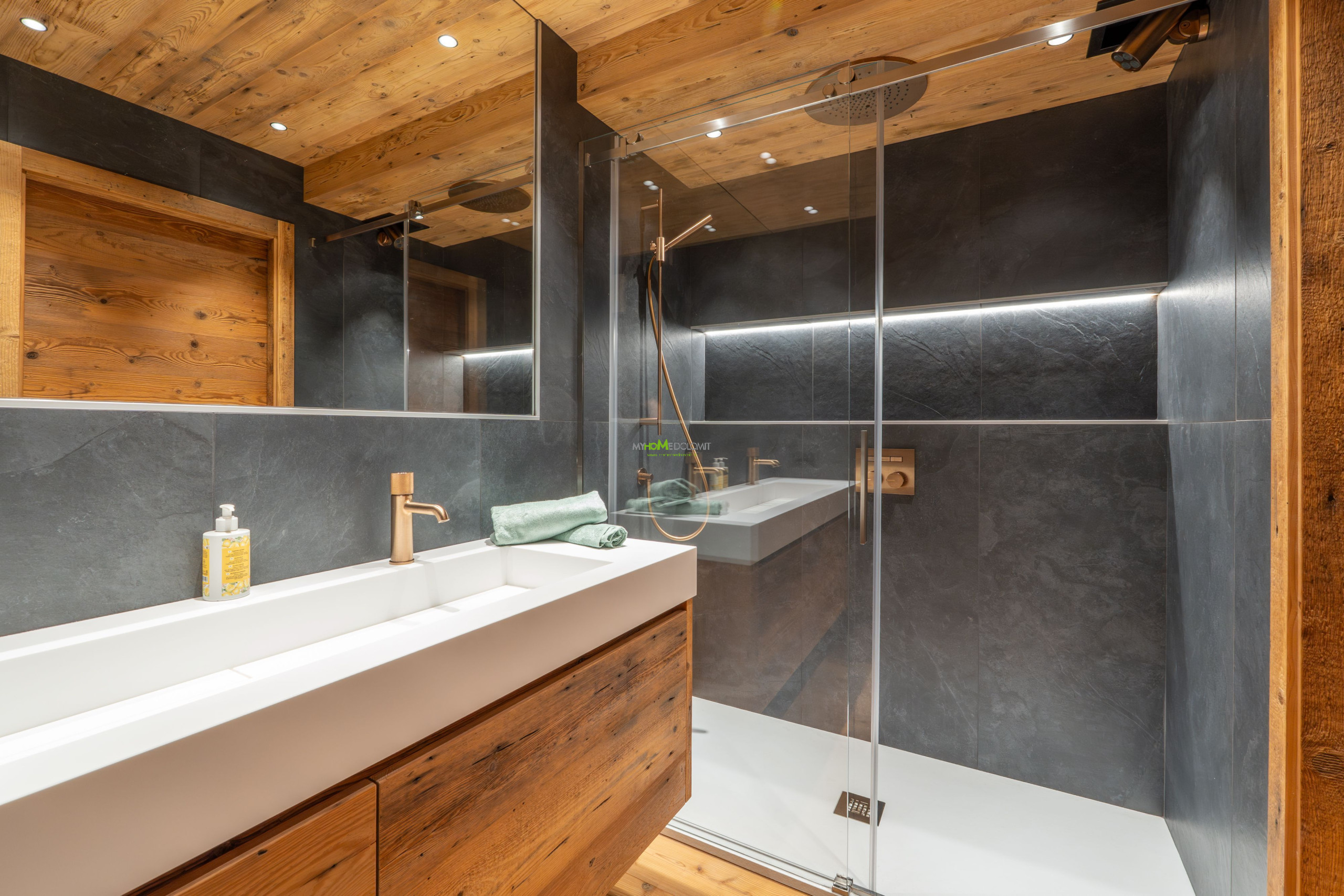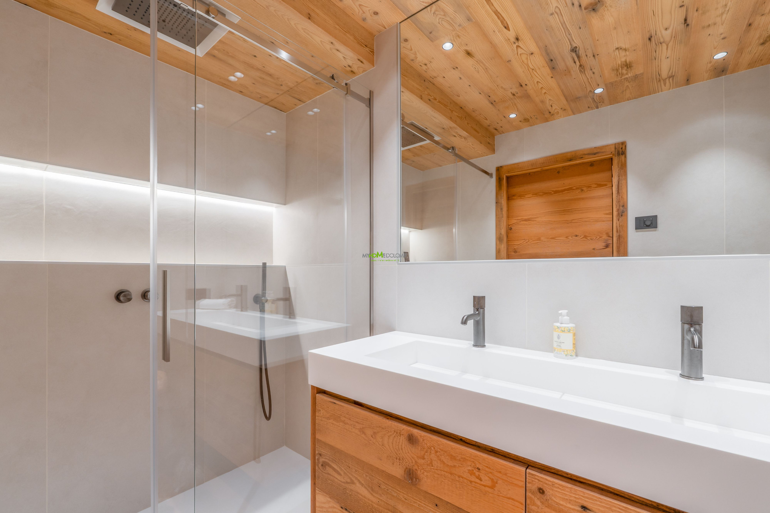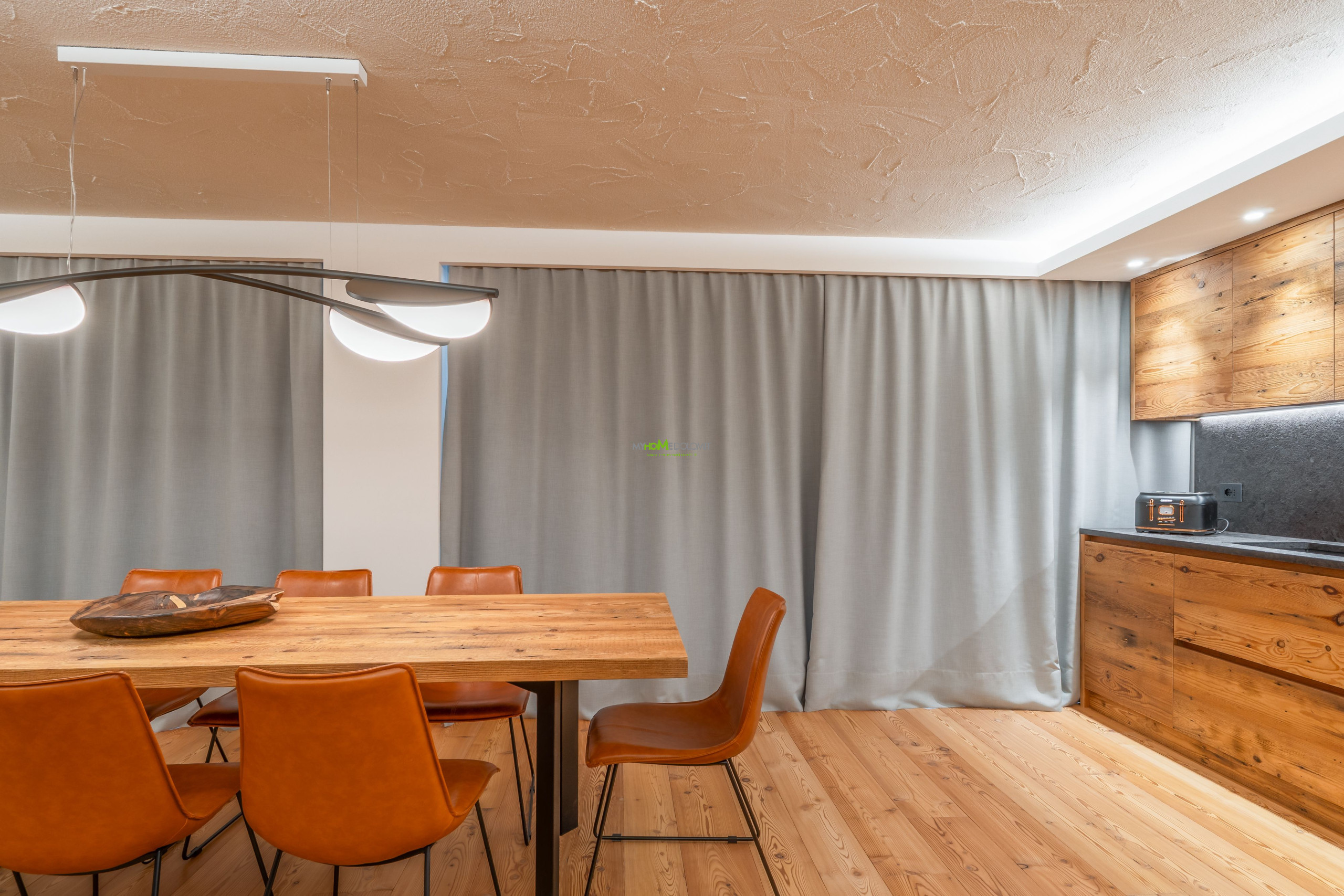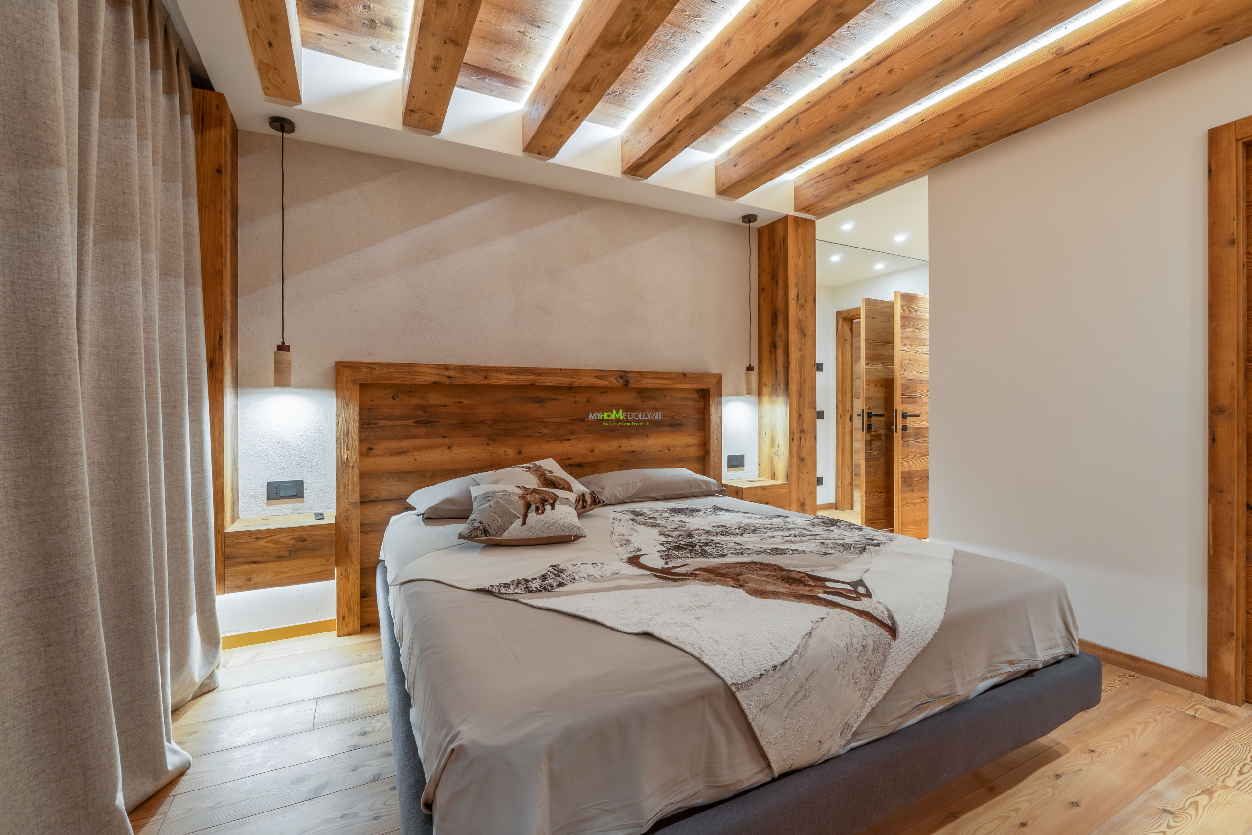 Treten Sie ein und lassen Sie sich von einer magischen Atmosphäre umhüllen. Der Duft des lokalen Holzes verschmilzt mit dem Licht, das durch die großen Fenster fällt und den Wohnbereich erhellt, in dem die Zeit stillzustehen scheint. Das Herz des Hauses ist der geräumige und lichtdurchflutete Wohnraum, ein Bereich, der für Geselligkeit und die Freude des Zusammenseins konzipiert wurde. Der große massive Holztisch, der bis zu 12 Personen Platz bietet, lädt Sie ein, fantastische Abendessen zu teilen und unvergessliche Erinnerungen zu schaffen. Und wenn der Abend hereinbricht, nehmen Sie auf dem eleganten Sofa Platz und lassen Sie sich von der Atmosphäre des stimmungsvollen elektrischen Kamins umhüllen, dem perfekten Ort für geflüsterte Gespräche und echtes Lachen. Die Wohnung erstreckt sich über zwei Etagen, eine Architektur, die Ihnen maximale Privatsphäre und Komfort bietet. Im Erdgeschoss, dem Zentrum der Geselligkeit, befinden sich der Wohnbereich und die Küchenzeile, zwei prunkvolle Doppelzimmer, jedes mit eigenem Bad und Balkon, eine Ode an die Ruhe. Hier können Sie sich zur Erholung in völliger Intimität zurückziehen. In dieser Etage finden Sie zudem ein Gäste-WC und den Waschraum mit Waschmaschine und Trockner. Steigen Sie in das Obergeschoss, wo der Schlafbereich Sie in einer warmen Umarmung empfängt. Zwei weitere gemütliche Doppelzimmer und ein Zimmer mit Etagenbett (mit Möglichkeit, ein zweites zu öffnen) warten darauf, Ihre goldenen Träume zu beherbergen. Alle Zimmer öffnen sich zu einem großen Panoramabalkon, der perfekten Bühne, um den Sonnenaufgang zu bewundern, der die Gipfel in tausend Schattierungen malt, und um den Tag unter einem sternenklaren Himmel ausklingen zu lassen.