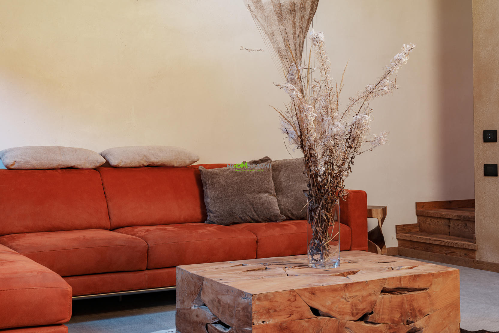 Das pulsierende Herz des Hauses ist die große, freundliche Küche, komplett ausgestattet mit Weinkeller und Kaffeemaschine, die sich zu einem Speisesaal öffnet, in dem Sie jeden Morgen ein Frühstück aus lokalen Produkten genießen können. Die Entspannung setzt sich im Wohnzimmer fort, das von einem imposanten offenen Kamin beheizt wird, und in den Badezimmern gibt es echte Wellnessbereiche mit türkischem Bad, geräumigen Duschen und natürlichen Toilettenartikeln.