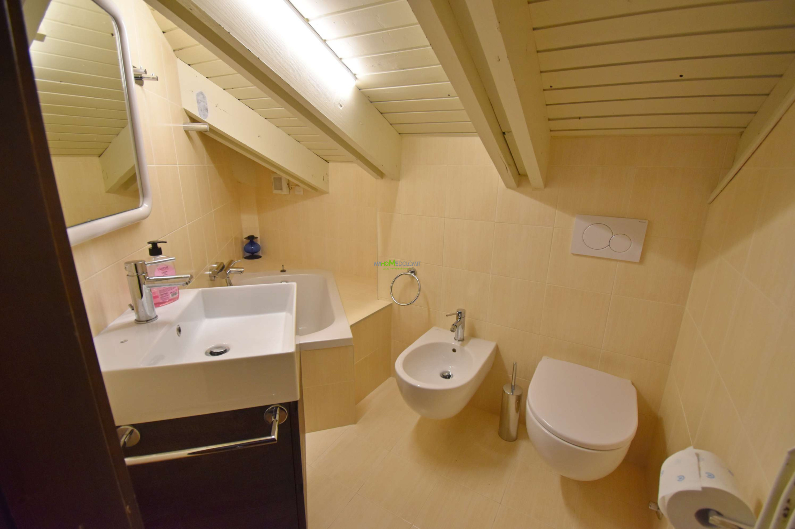 A welcoming and spacious two-level apartment, ideal for large families or groups. Featuring an independent entrance on the first floor, it is furnished in a simple and functional manner. It consists of an entrance, a bright living area with a spacious lounge equipped with a comfortable sofa area and generous windows that open onto a balcony offering a suggestive view of the garden, fir trees, and the lake. We also have a equipped kitchenette with a small dining area. On the same floor, we find the first sleeping area with a comfortable double bedroom, a single room, and a complete bathroom with a shower. On the upper floor (attic), accessible via an internal staircase, we find the second sleeping area with a second attic bathroom equipped with a bathtub, a room with two single beds, and an additional room with a double bed positioned flush with the wall. The location is strategic: situated in a very quiet and green area, it allows you to forget the car, and is just a few steps from the Spinale Cable Car to immediately reach the slopes. The charming Lake Campiglio and the town centre, with all its services, venues, boutiques, and shops, are easily and conveniently accessible on foot. The perfect choice for a holiday focused on sport and relaxation in the heart of the Brenta Dolomites... tranquillity and slopes at your fingertips.