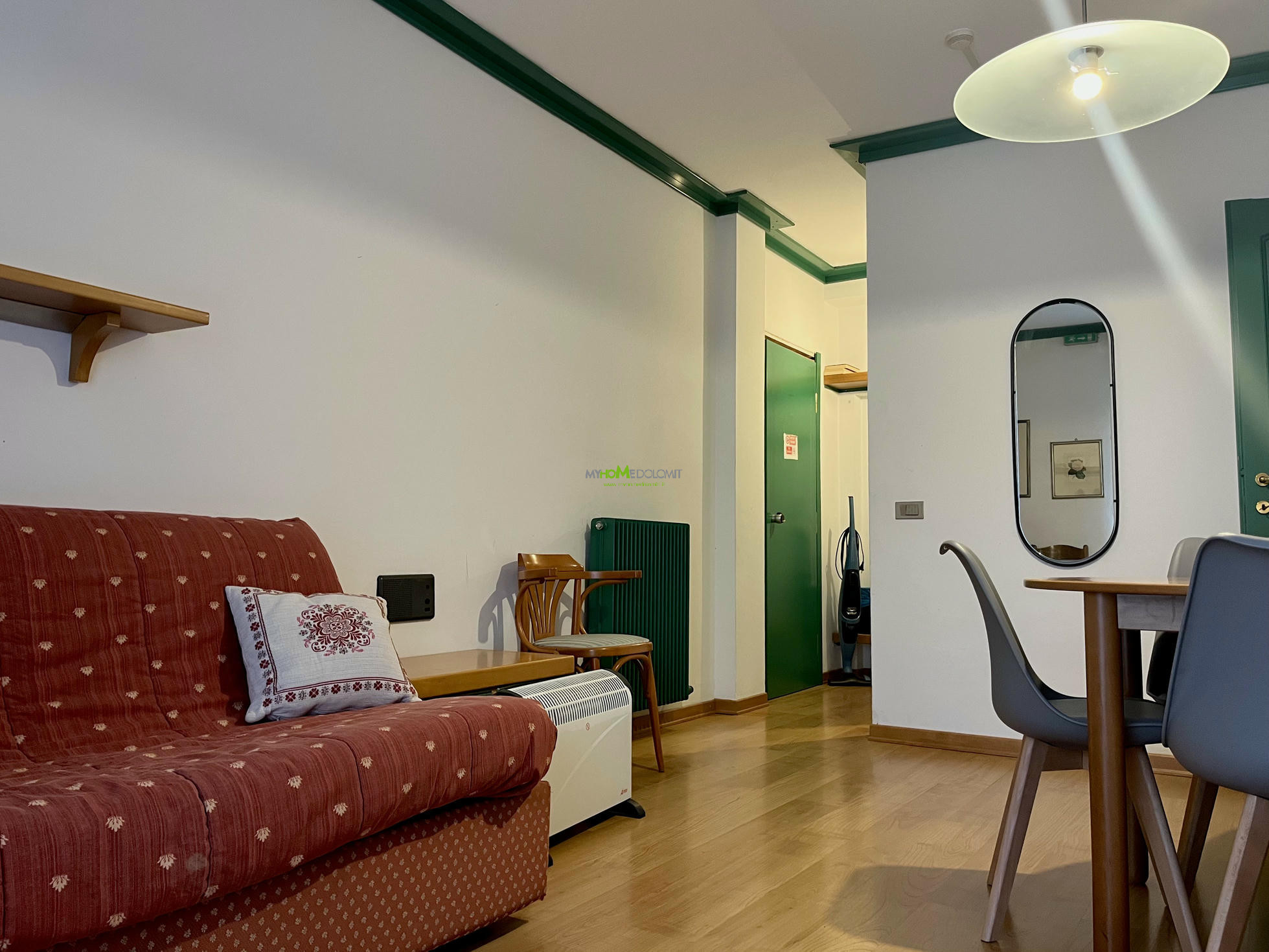 Two bedrooms apartment for 4 people VERY CENTRAL, directly overlooking Piazza Righi, in the limited traffic area, a few meters from shops, bars, markets, and all you need to spend a great holiday without using the car. Located on the 4th floor with lift, it comprises an entrance hall, kitchenette, living room with double sofa bed, small room with bunk bed, bedroom with double bed, bathroom with shower, sunny balcony with a splendid view overlooking the center of Madonna di Campiglio, mountains and slopes that surround this resort. Just 100 meters from the 5 Laghi cable car and the ski slopes.