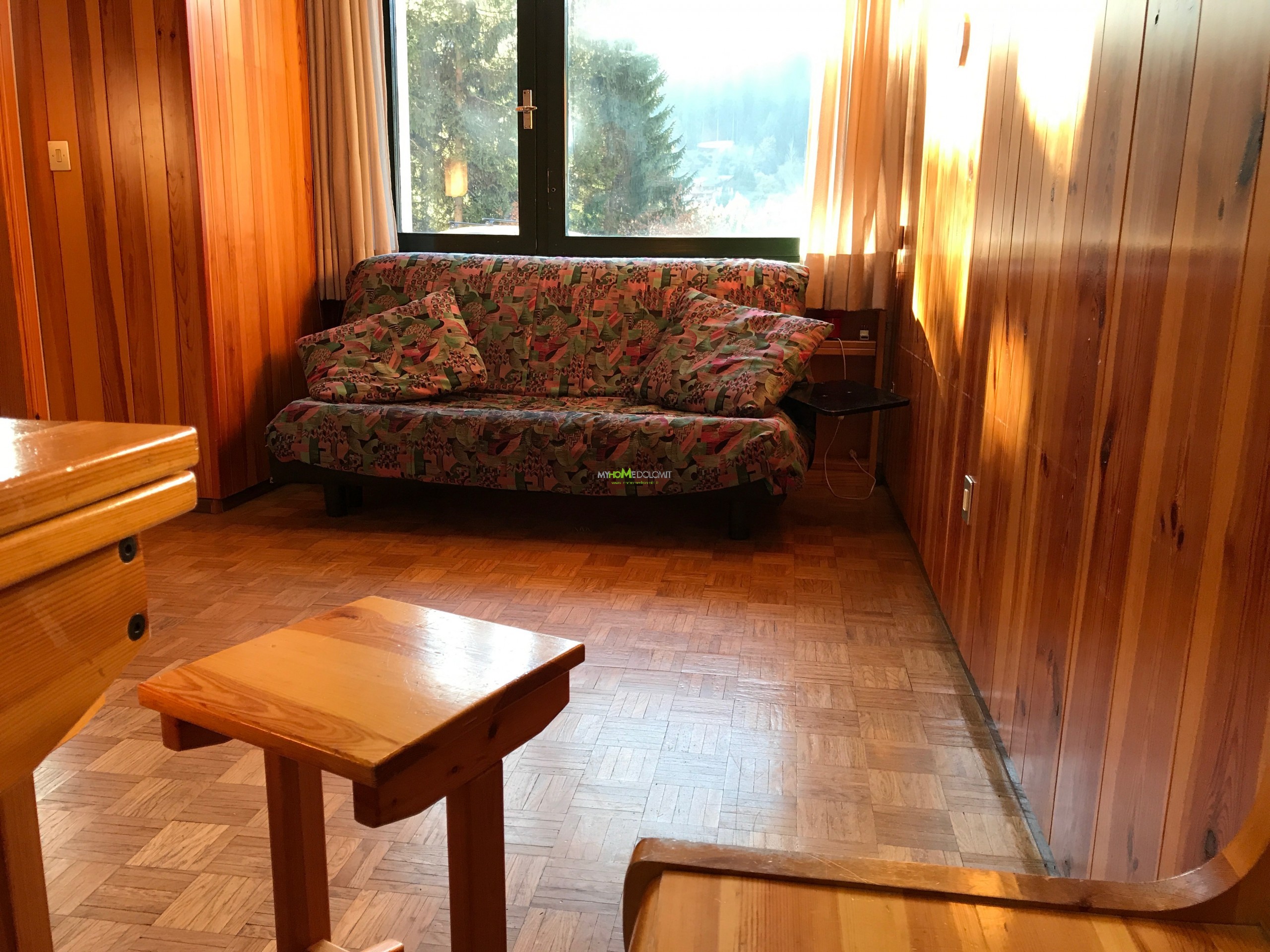 In this studio apartment in Madonna di Campiglio, which has a capacity for 4 people, there are a sitting room with double sofa bed, a little bedroom with bunk bed. The apartment is 30 m², is on the ground floor and has views of the parking and is located at the foot of the skiing-slopes, 150 m from CABINOVIA SPINALE skiing resort and 200 m from Laghetto di Campiglio lake.