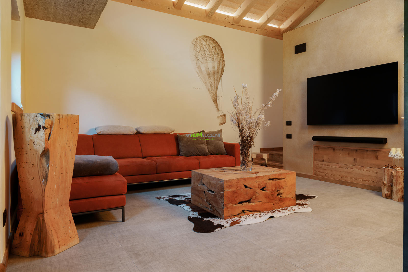 The experience naturally extends outside, where the large garden becomes a private open-air SPA: you can cool off in the wood-fired sauna, relax in the solarium, or dine under the gazebo thanks to the barbecue and outdoor oven. Despite its commanding and private location, the lodge remains just minutes from the main amenities and numerous sports activities, including a swimming pool, tennis, paddle, and a scenic bike path, making it the ideal base for families, athletes, and digital nomads seeking beauty and authenticity.