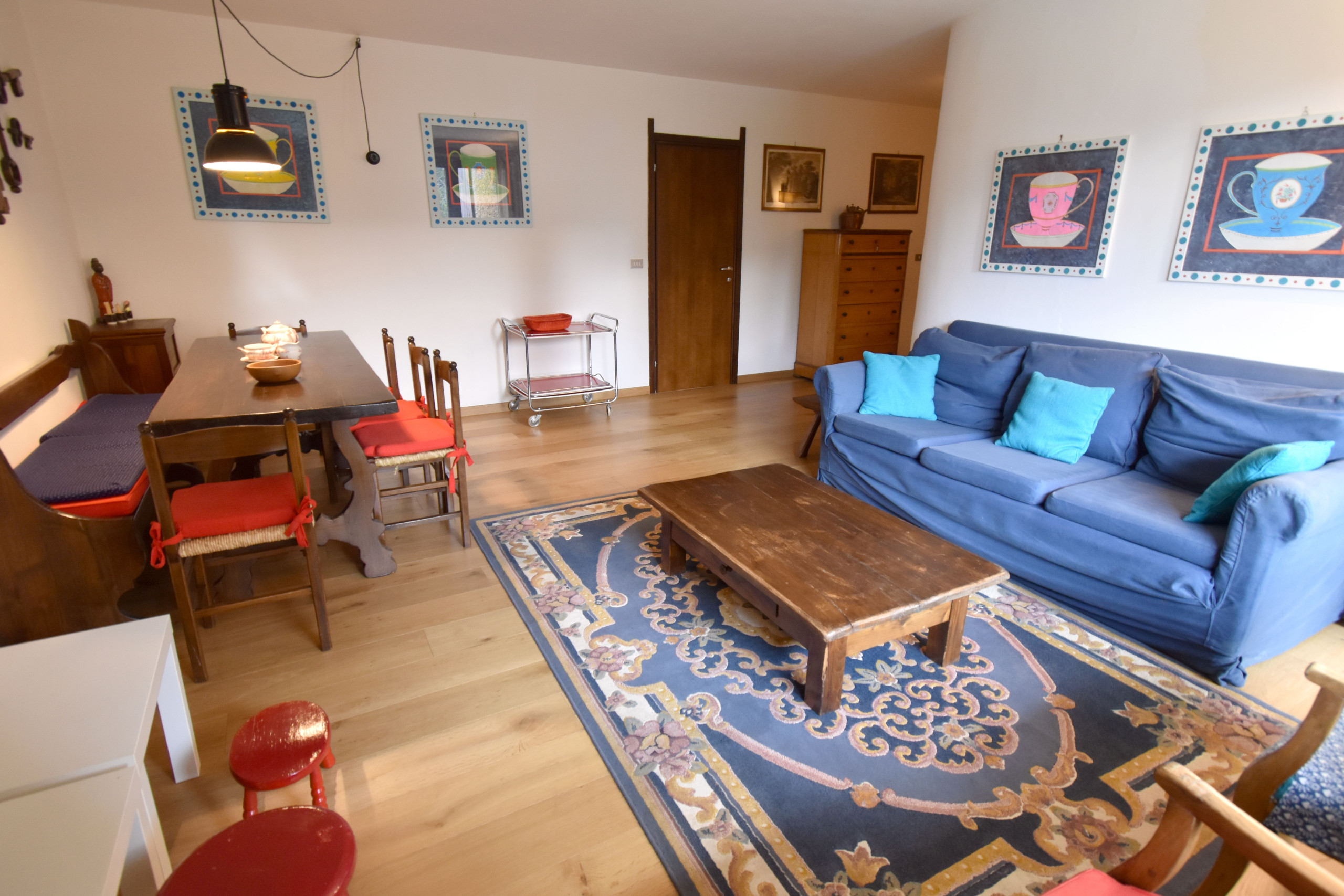 Located in the area of Campo Carlo Magno in Madonna di Campiglio, a unique position, close to the ski slopes and golf course, surrounded by woods and pastures, it stands out for its splendid view that embraces the majesty of the Brenta Dolomites, the ski slopes and the golf course, guaranteeing an unparalleled natural spectacle. Located on the 2nd floor (without lift), it has an optimal layout to accommodate families or groups, consisting of a large entrance leading to a welcoming and bright living area with a dining area, a sofa area and access to a panoramic and sunny balcony. A main bedroom area with a hallway and composed of a comfortable double bedroom, a twin bedroom and a master bathroom with a bathtub, a guest/kitchen area that consists of a functional separate section offering a practical kitchenette, a shower bathroom and a bunk room perfect for teenagers or service staff.
