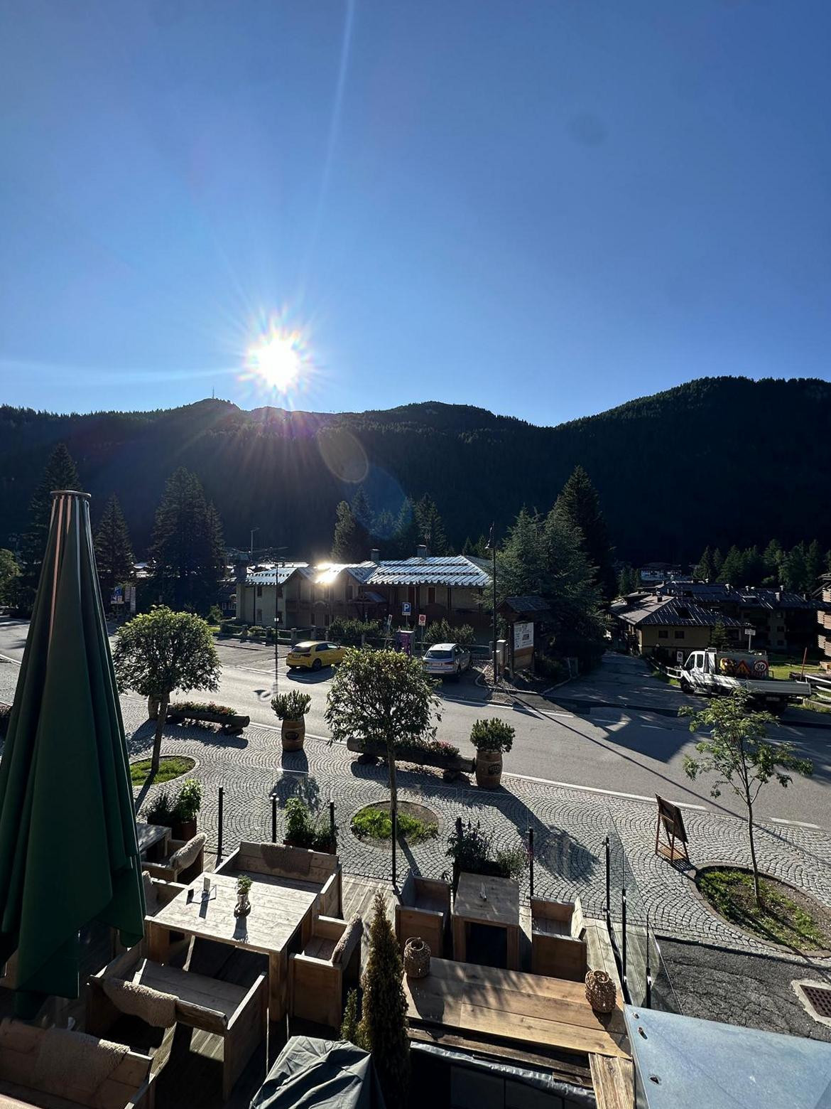 Uno dei punti di forza di questa proprietà è il lungo balcone che si estende lungo tutto il fronte dell'appartamento, offrendo una splendida vista sulle montagne circostanti di Madonna di Campiglio.