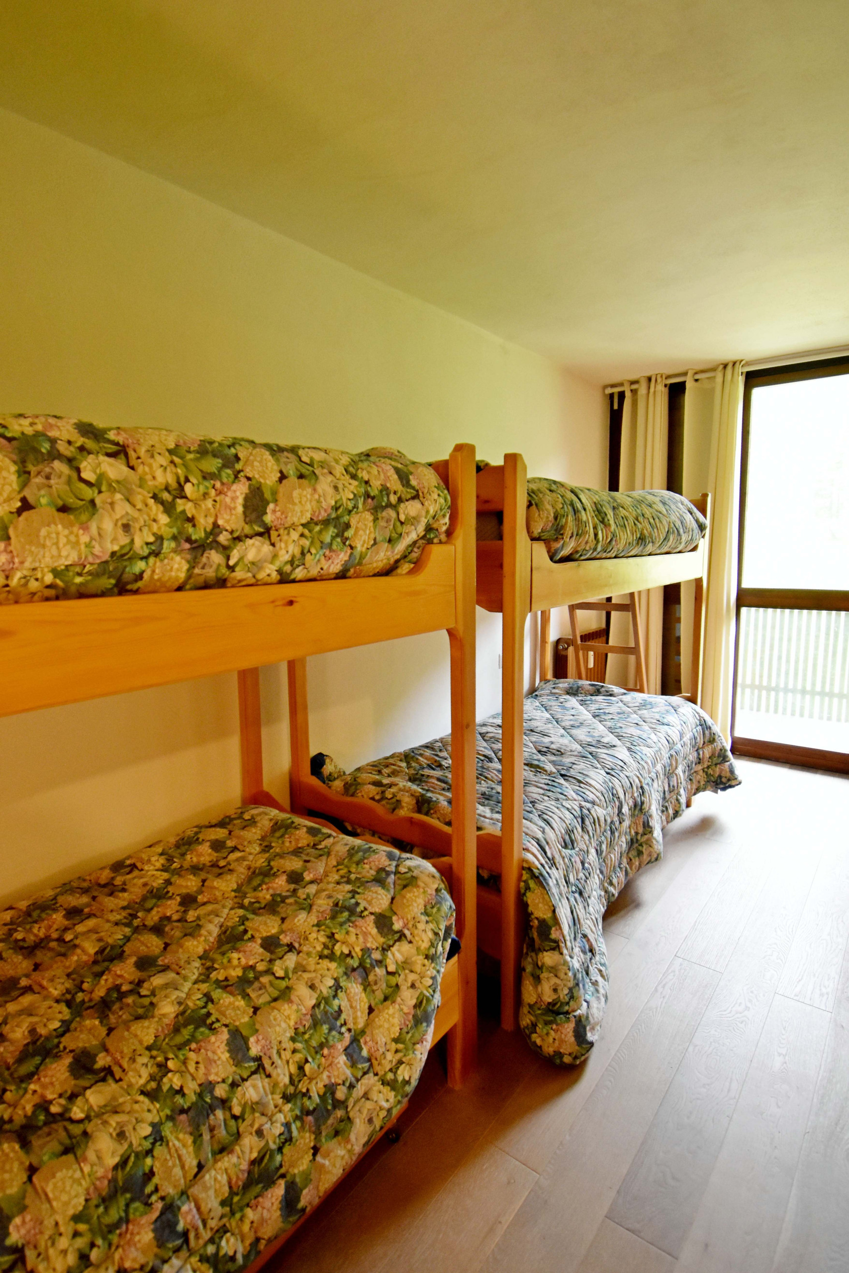 La zona notte è composta da due camere ben organizzate: una matrimoniale e una seconda stanza ideale per famiglie o ospiti, dotata di due letti a castello (per un totale di 4 posti letto). Entrambe le camere si aprono su un balcone esposto ad ovest, il luogo perfetto per ammirare ogni giorno il tramonto sulle cime circostanti e l'ampio giardino condominiale sottostante. Completa l'appartamento un bagno moderno con doccia.